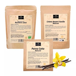 Prix 2,50 €Simple d'utilisation et rapide à préparer, vous réaliserez un savoureux gâteau au chocolat et de délicieux flans et crèmes au chocolat. Gourmandise assurée !Préparation pour :Gâteau au chocolat BIO, 8 à 10 parts (sachet de 300g)Crème au chocolat, sans Gluten (sachet de 85g)Flan au chocolat, sans...